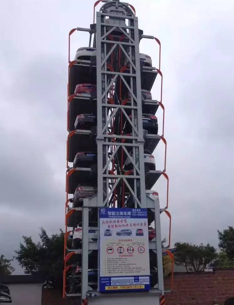該車庫于今年年初完成了樣機的生產和調試等工作。該樣機共9層16車位,總高度將近20米,可停放SUV型轎車。
